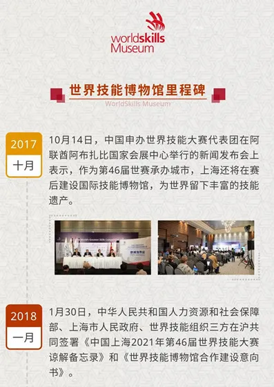 2018年1月30日,中华人民共和国人力资源和社会保障部、上海市人民政府、世界技能组织在上海共同签署《世界技能博物馆合作建设意向书》,世界技能博物馆正式启动建设。
