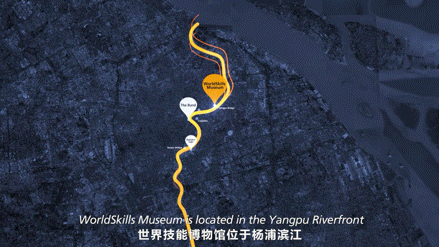 世界技能博物馆选址于上海市杨浦区杨浦滨江区域,位于杨浦大桥下,临江而立,周边环境优越、交通便捷。