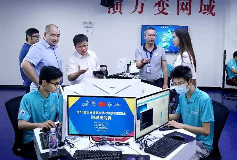 日前,四川省人力资源和社会保障厅副厅长王勇来到成都西部智谷工业园,观摩第46届世界技能大赛四川省网络安全项目集训队阶段测试赛。